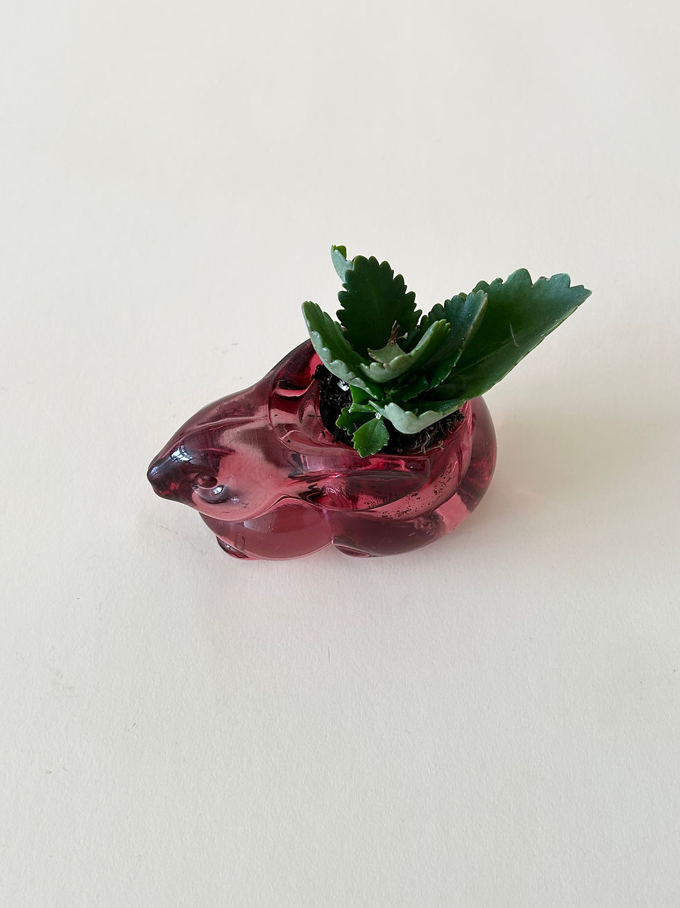 Succulent in Vintage Glass Rabbit