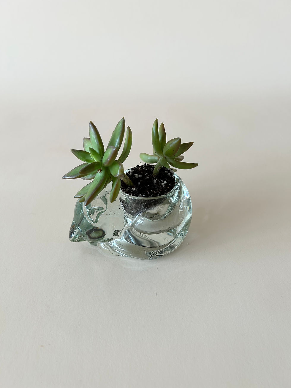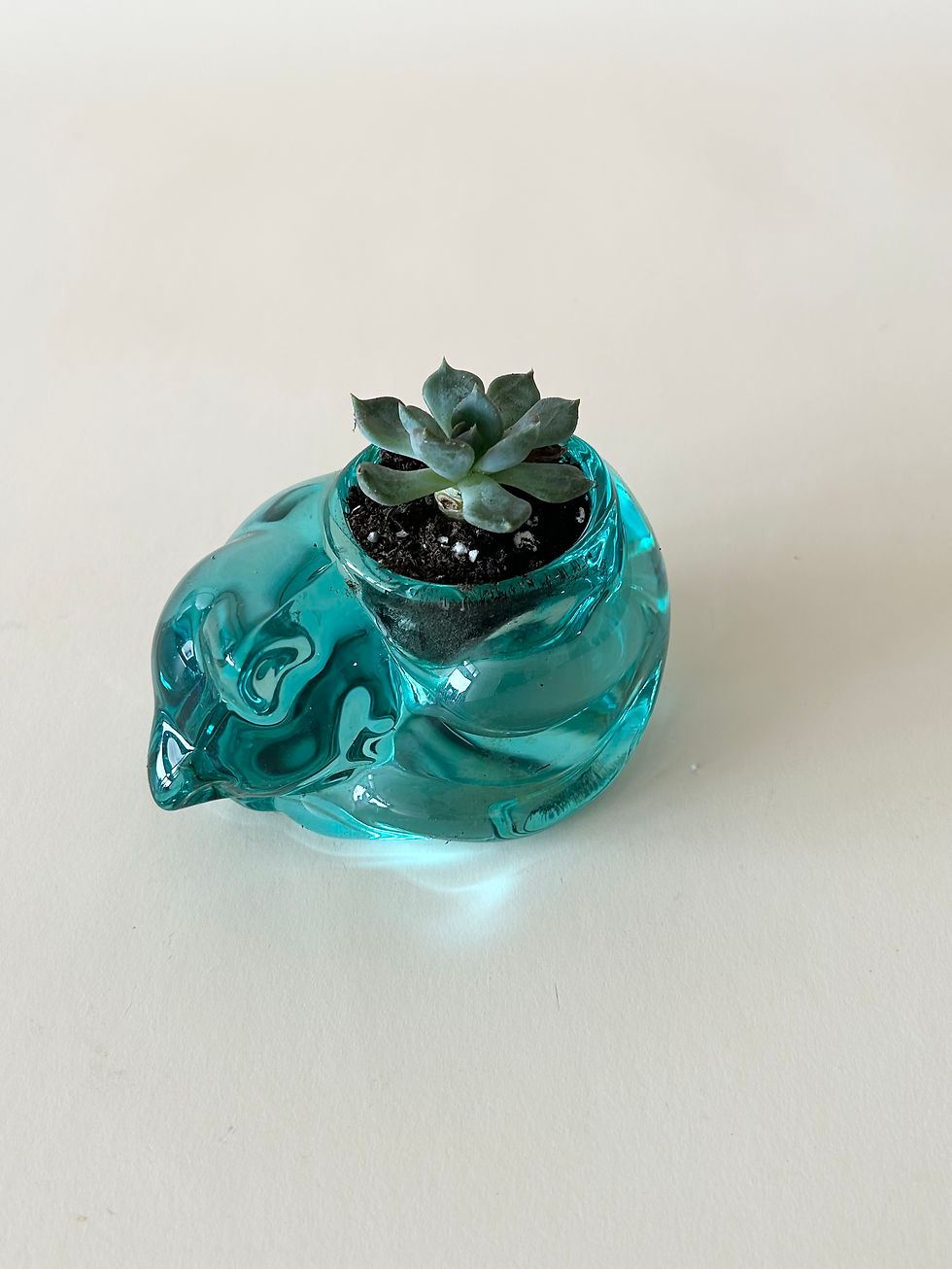Succulent in Vintage Glass Sleeping Cat